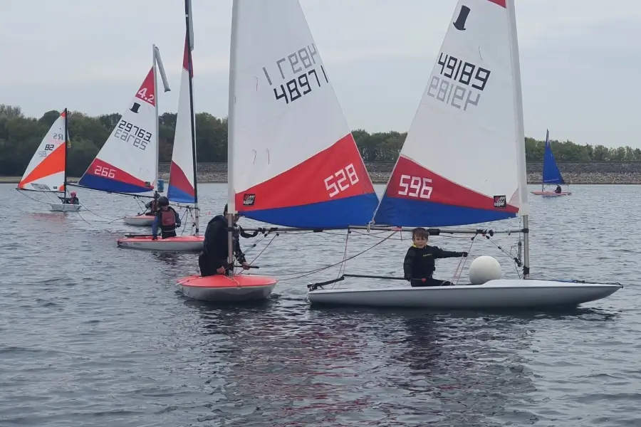 This weekend was the final Saturday Club of this season. The weather was a bit grey, but the breeze was at a perfect level for our Saturday Clubbers, enough to make good progress but not so much as to turn the morning into an exhausting battle with the elements. The fleet was almost exclusively Toppers with one lone Tera, although there were plenty of Teras elsewhere on the lake- but more on that later.
