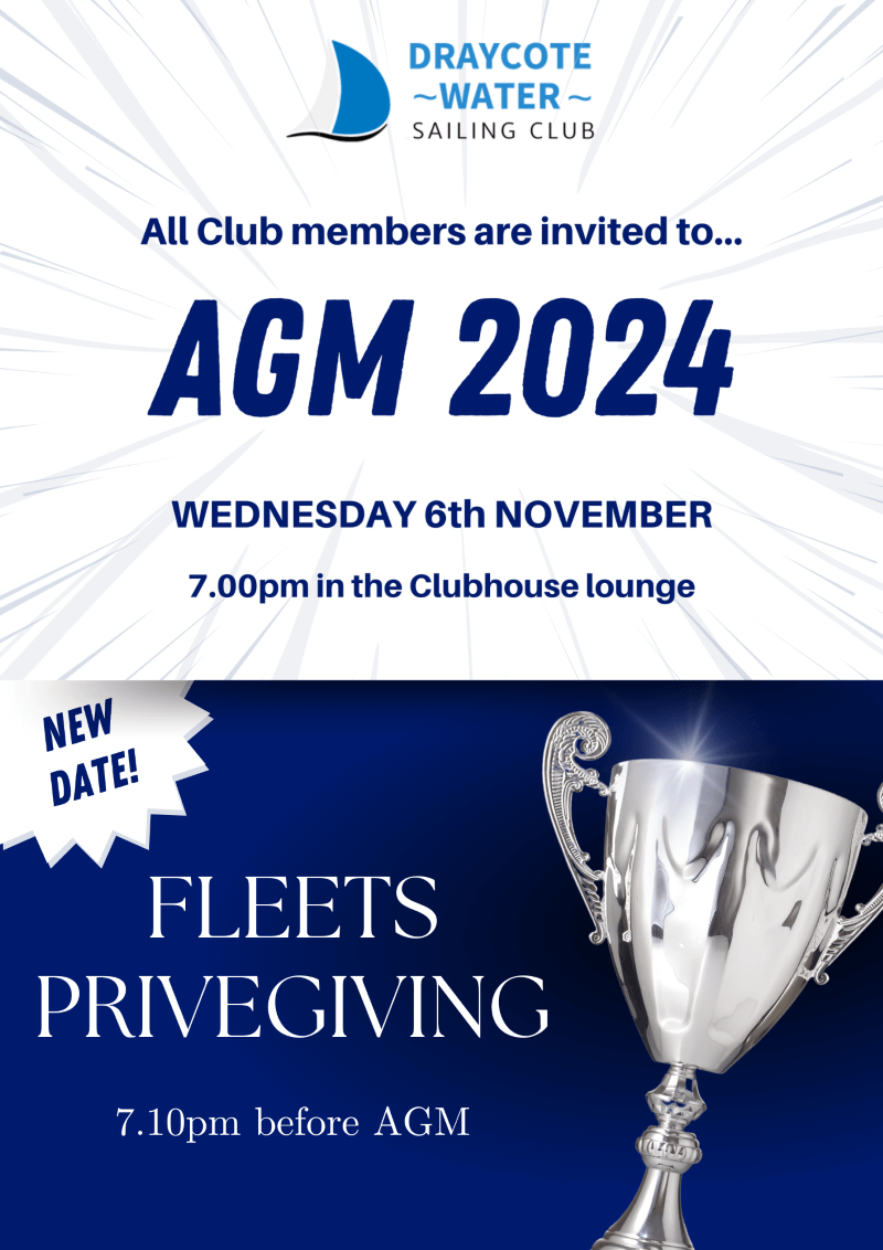 Plus, Prizegiving for the summer Club racing series will now be just before the AGM at 7.10pm.