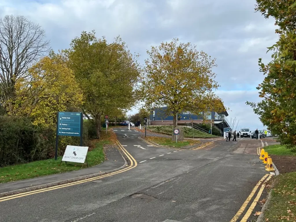 Turn right here for our lower car park, trailer park, and also for disabled parking bays in the Severn Trent main car park.