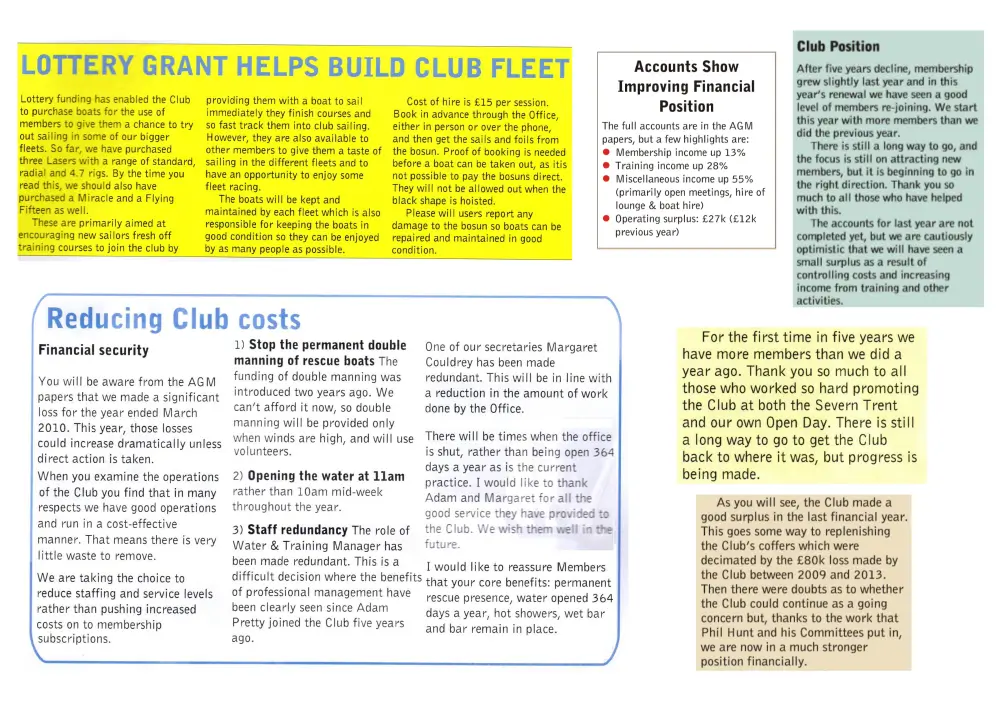 The recession and economic crash of the late 2000’s saw our Club take losses of £80k over 5 years and our finances were in a woeful position. The Committee were faced with the need to take drastic and decisive action to turn improve our chances of surviving. Immediate cost-cutting exercises were done along with plans to make the Club more efficient to run and