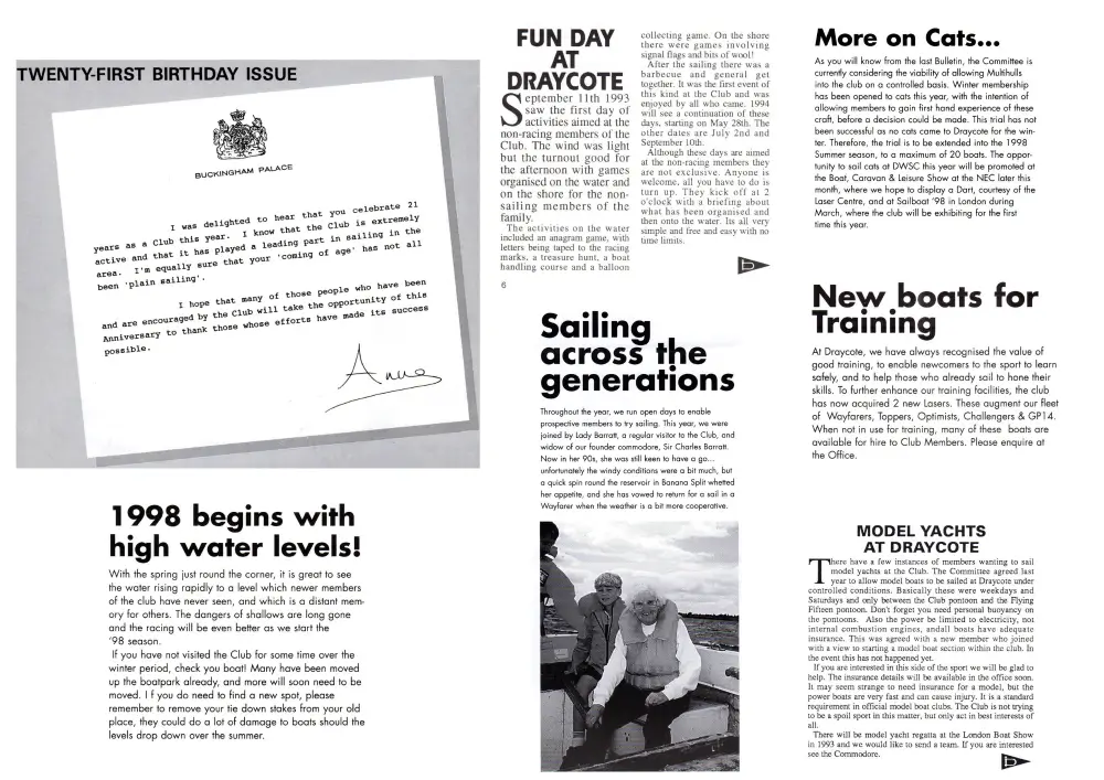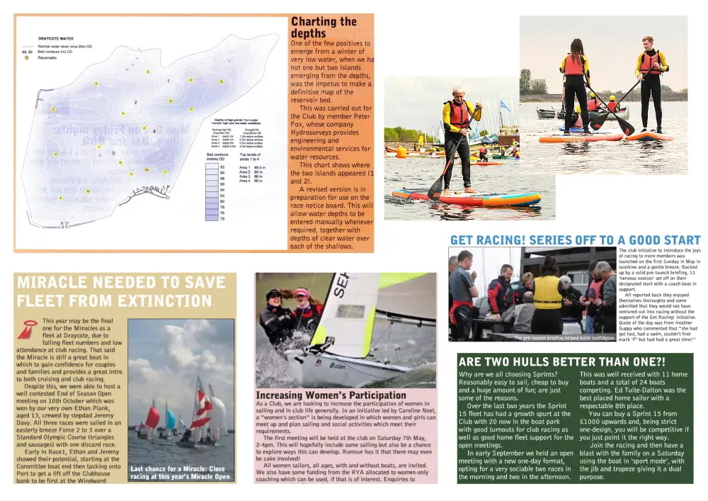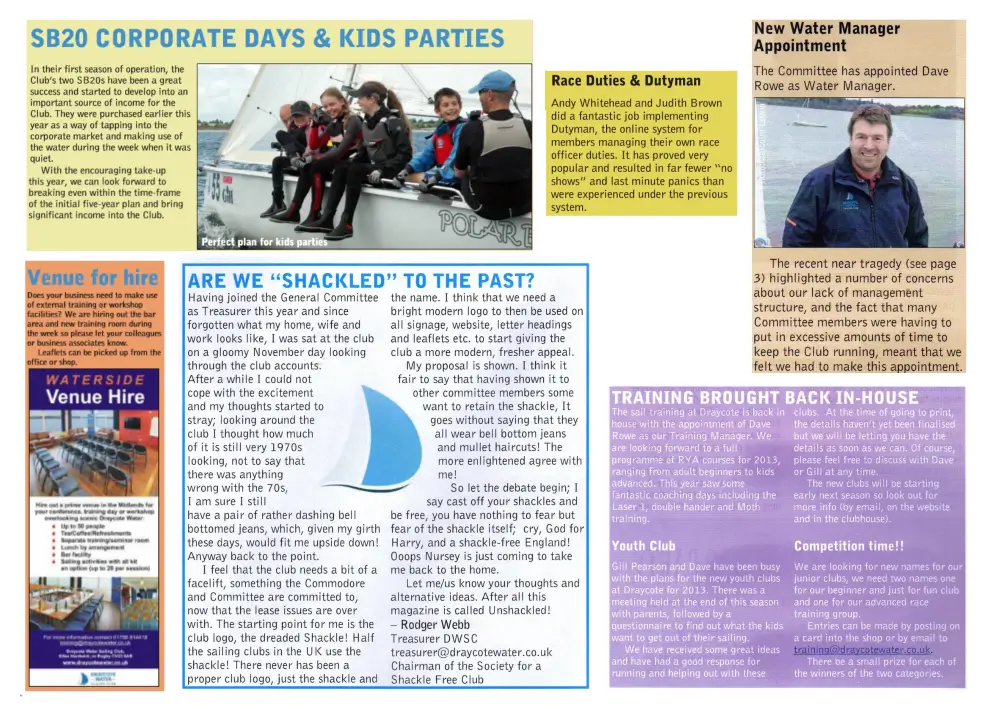 Since the Club started, a regular printed newsletter has been given to members with updates and information on events, racing, social activities etc. The newsletter was later rebranded as ‘Draycote Unshackled’ and, as digital communication has become more popular, has since become an annual round up of Club activity.